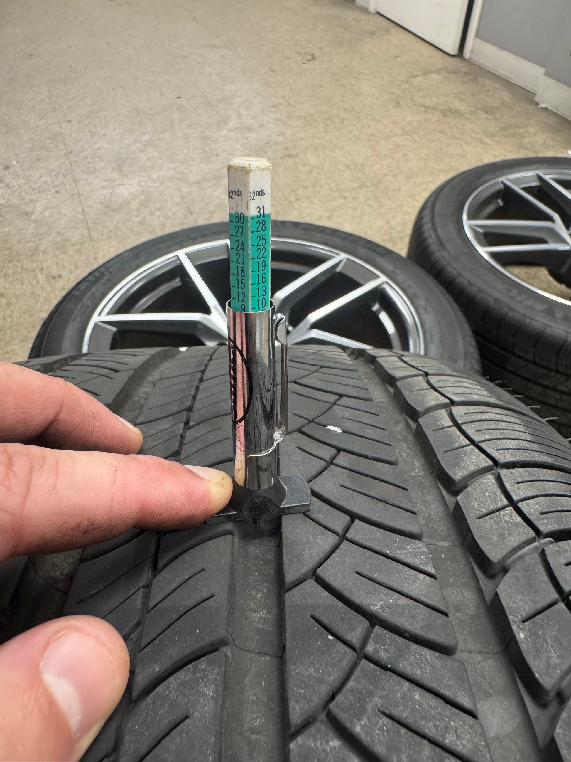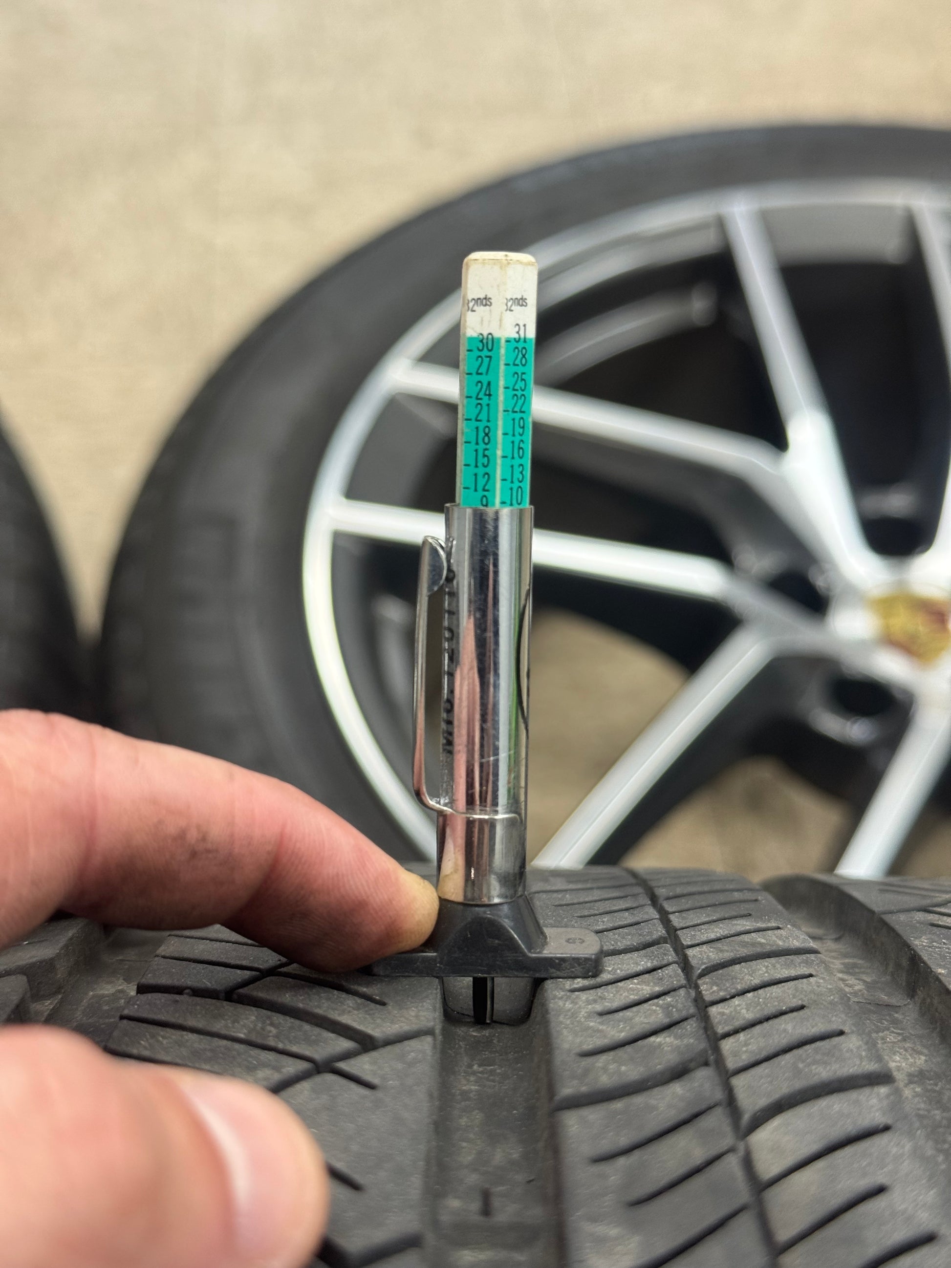 Available for sale is a complete set of 20” OEM 95B.3 Macan S Wheels with high-tread. Michelin Latitude Tour HP All-Season tires. They have a Machined finish over a titanium gray base. The current tires have approximately 90-95% remaining tread at 9-9.5/32"