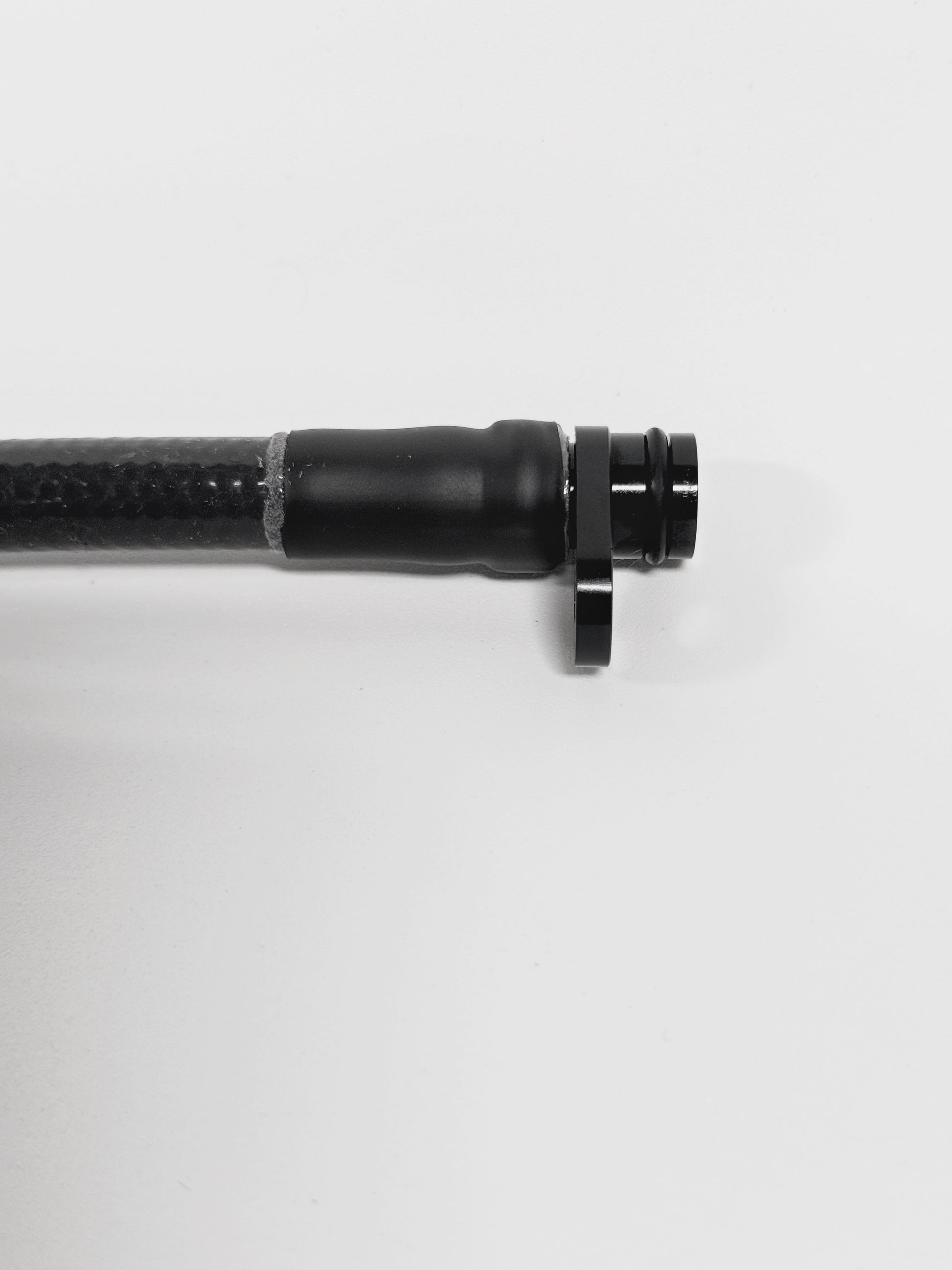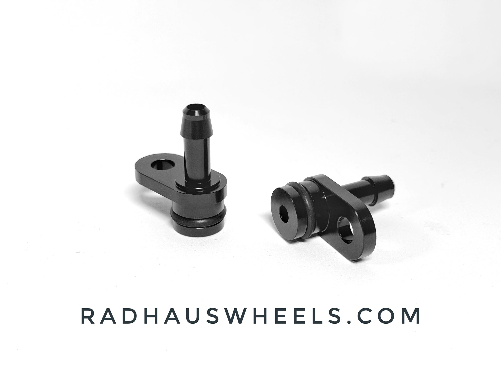 - Custom, CNC machined, black anodized aluminum fittings