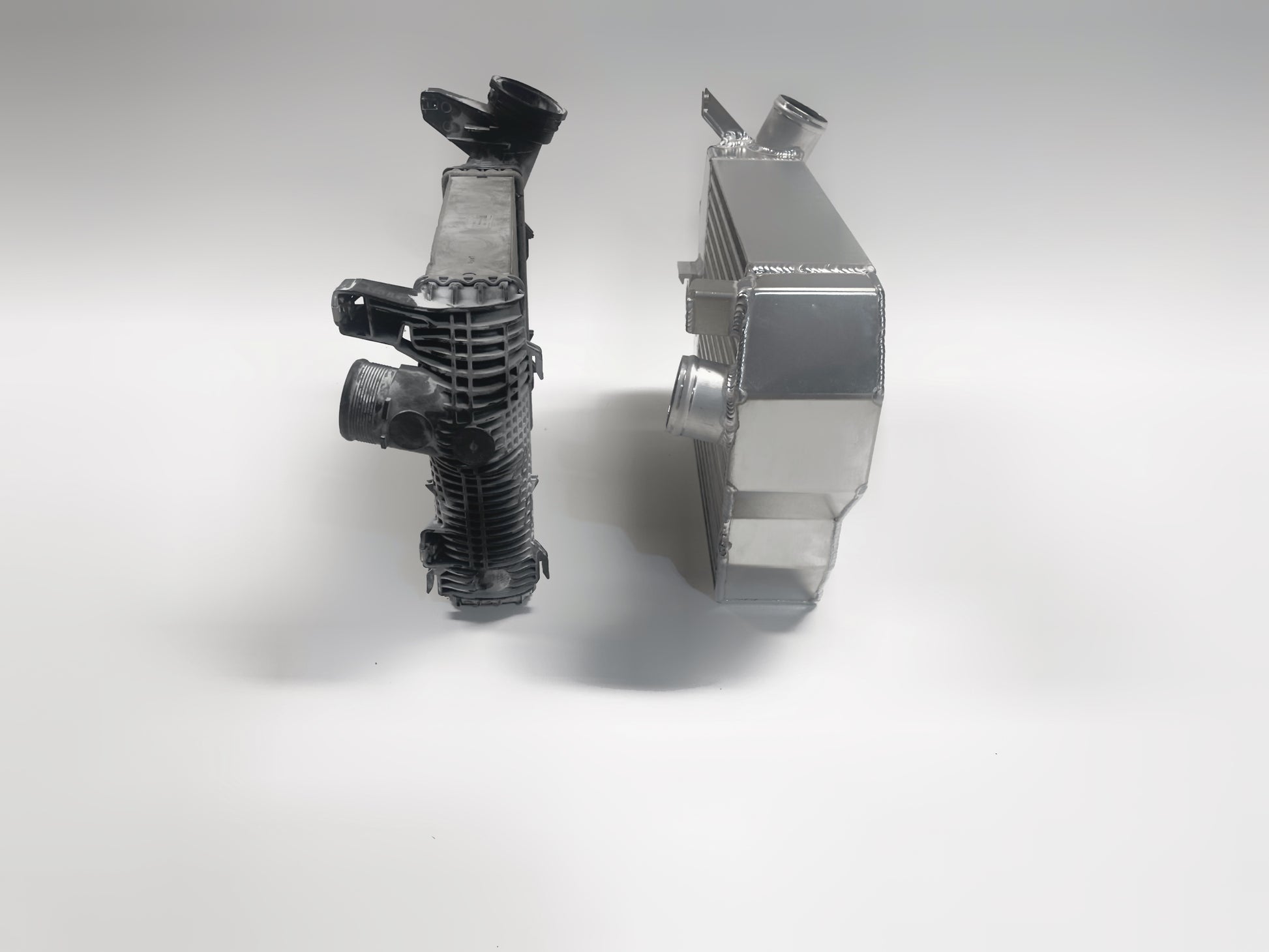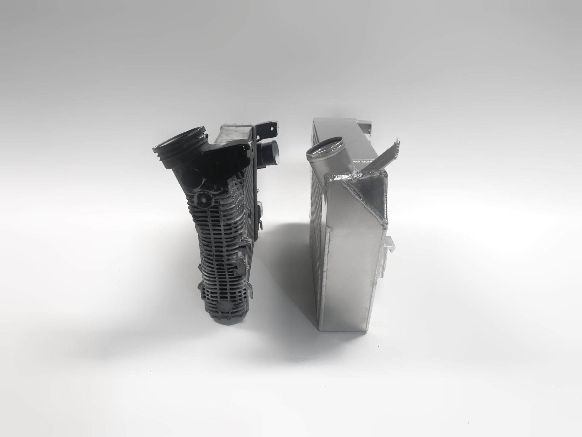 We have developed the only commercially available upgraded intercooler solution for the 95B.1 Macan. Our proprietary design fits the S, GTS and Turbo and adds a significant amount of cooling capacity. The Macan, particularly with tuning, runs a lot of boost pressure and can cause higher IATs (intake air temperatures) without proper cooling. The Radhaus Performance Intercoolers are a direct factory replacement and offer improved performance.